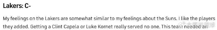 好在湖人队成为买断市场赢家之一,用一份2年1660万美元的廉价合同引进艾顿,否则按照湖人队整体的操作,以及詹姆斯连续公开施压表达不满,湖人队很难获得及格分。